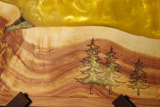 From a tree in our gulch to a one of a kind piece. These boards range in size, shape and purpose, and each one is unique with perfect imperfections. All of our boards are final sealed with a wood finish called Rubio Monocoat, it's food safe, water resistant and free of VOCs. While the seal coat is water resistant, please do not allow board to soak in water.
